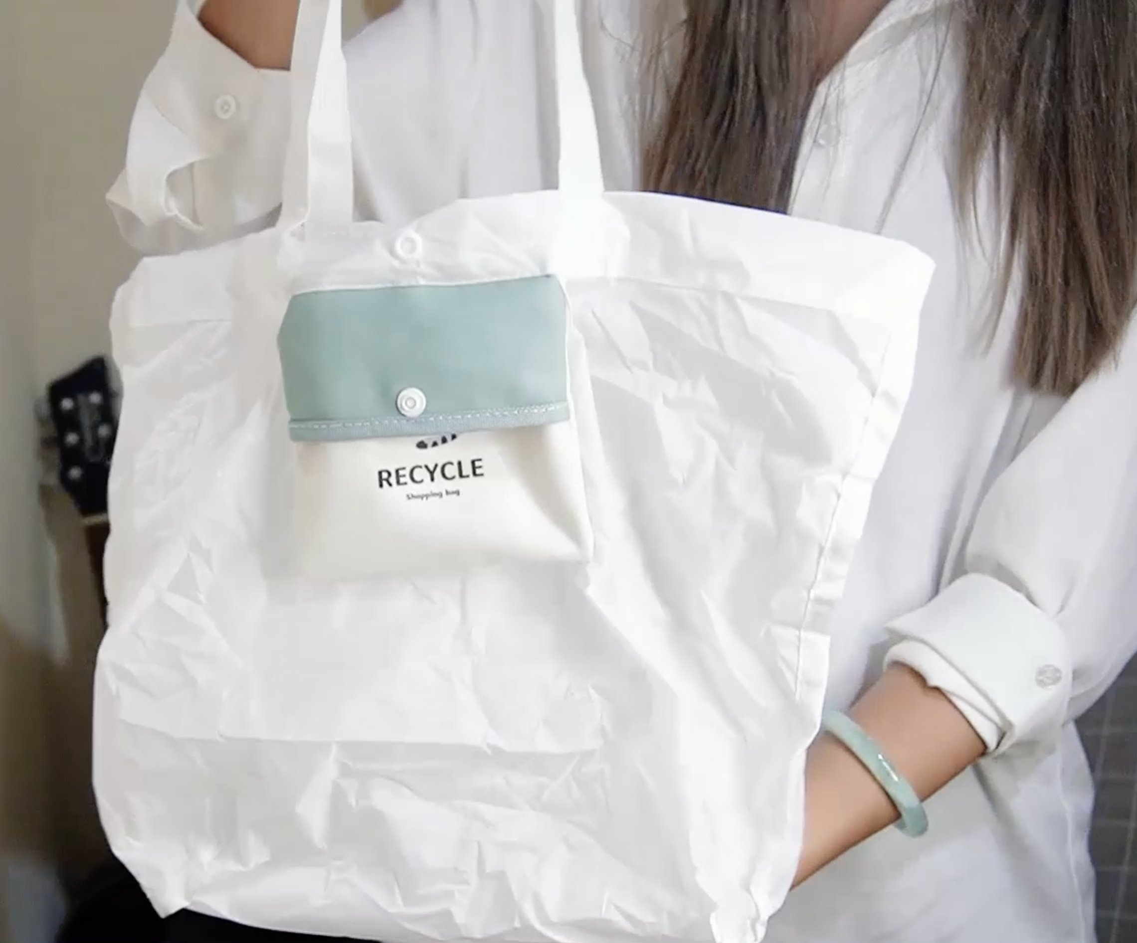 環保守護者後背包有送可收納購物袋,未使用時可當背包吊飾