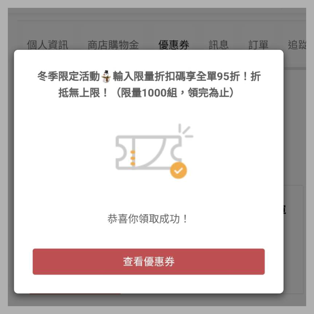 點擊下方圖片就可以領取到95折優惠券囉~祝您購物愉快!