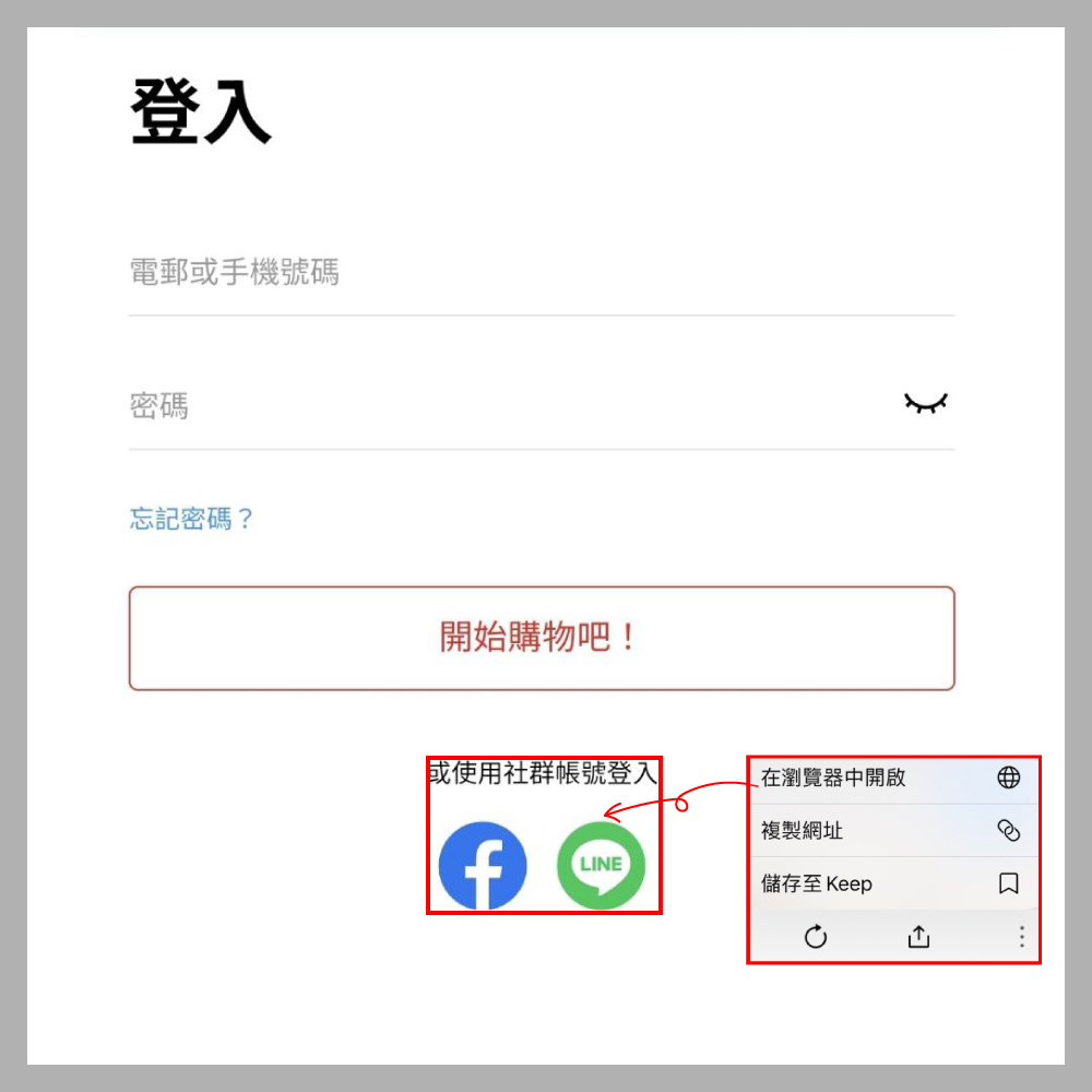 (使用手機 FB / LINE 快速登入請先點選右下角點點