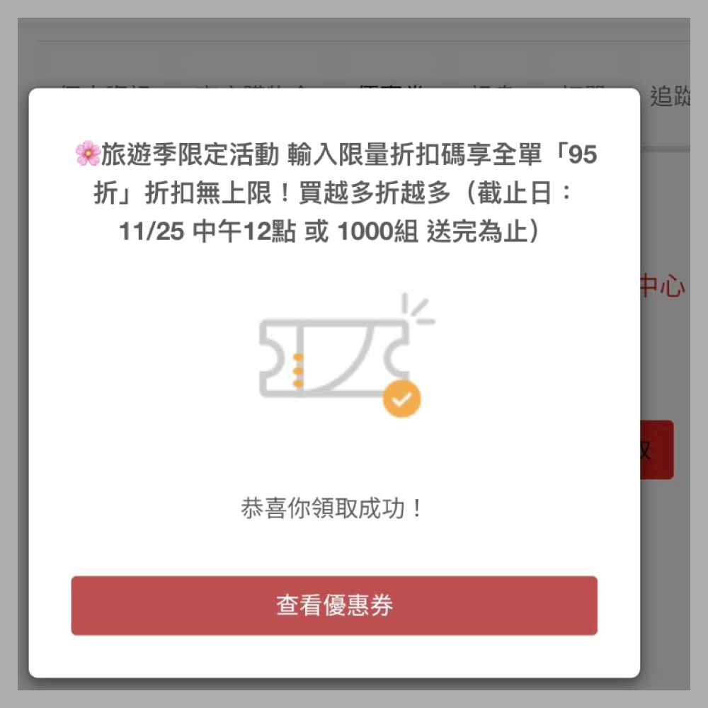 點擊「立即領取」按鈕即可獲得優惠券