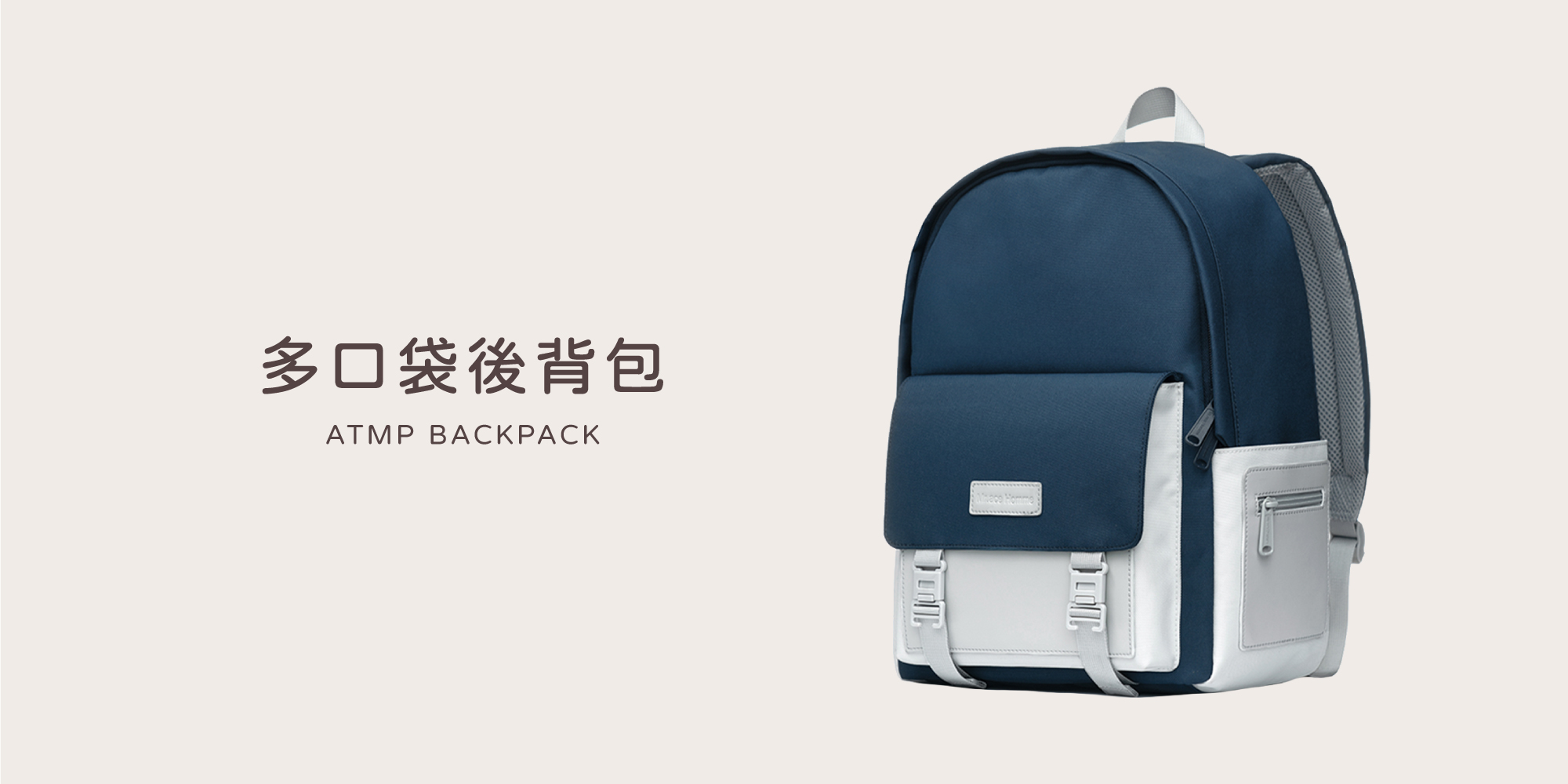 皮革 X 布料,異材質結合為此系列背包最亮眼的設計之一!有兩種大小,筆電隔層最大可放進15.6吋筆電,背包布料為防潑水設計、背部有防盜暗袋設計、背帶為減壓式設計,整體造型時尚百搭,適合當作旅遊後背包、上課用書包、媽媽包、上班通勤包。