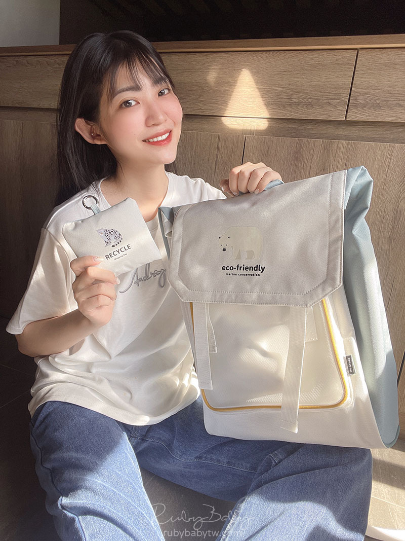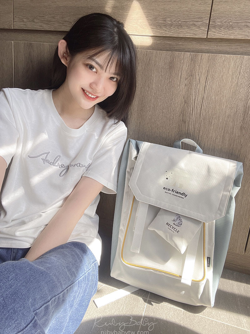 背包皆為回收塑膠、寶特瓶分解而成的再生纖維環保材質製作而成