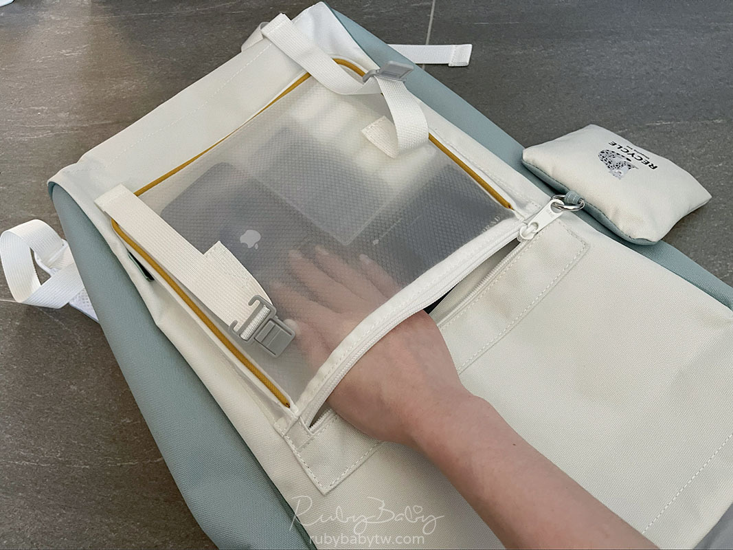 拉鏈前袋這邊是半透明設計