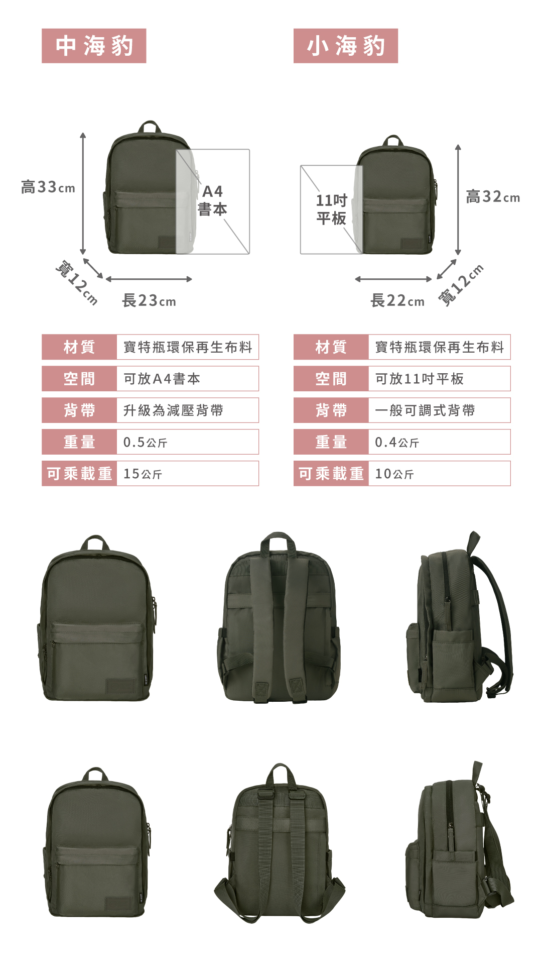 中款為大款的縮小版,除了沒有筆電隔層,其餘隔層皆與大款相同
