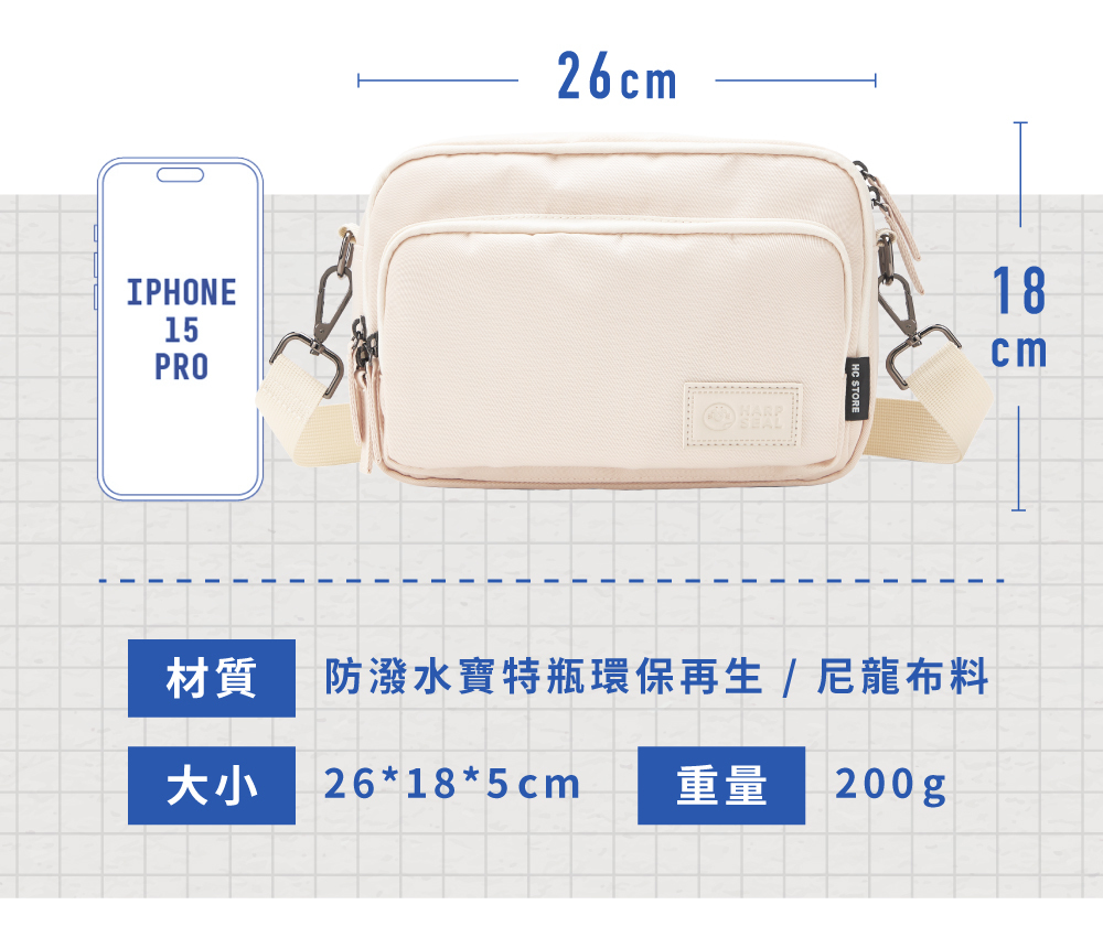 .材質:防潑水環保寶特瓶再生高強度耐磨布料