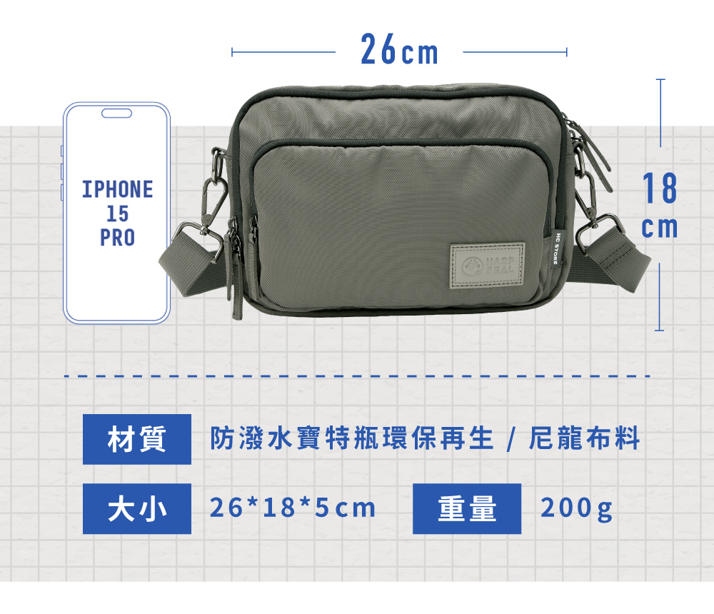 .材質:防潑水環保寶特瓶再生高強度耐磨布料