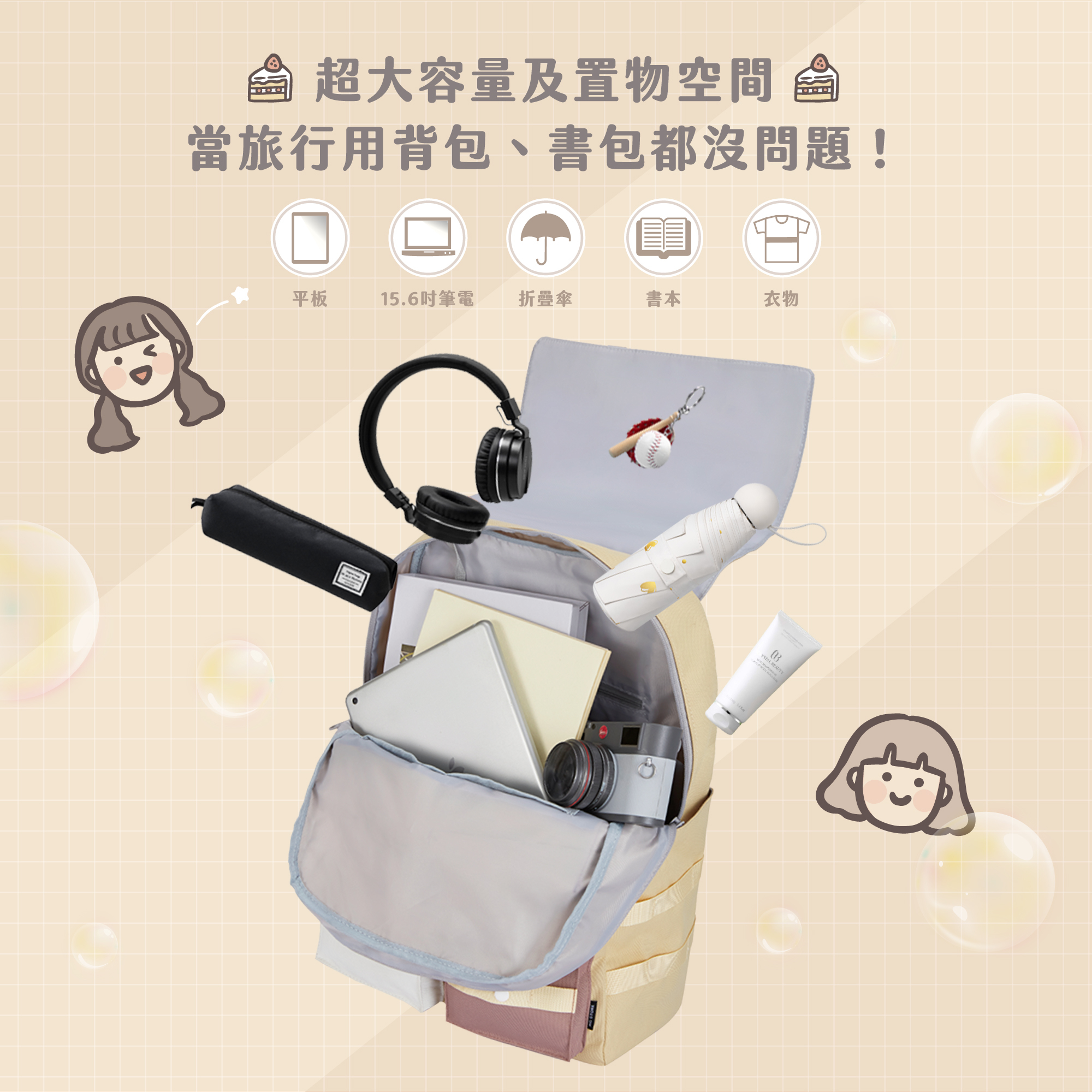 A:面料全面升級為防潑水設計,可抵擋小雨及潑水,但是如果長時間對著背包沖水或是淋雨,水滴還是有可能會從背包的小縫隙跑進去而導致背包濕掉哦!
