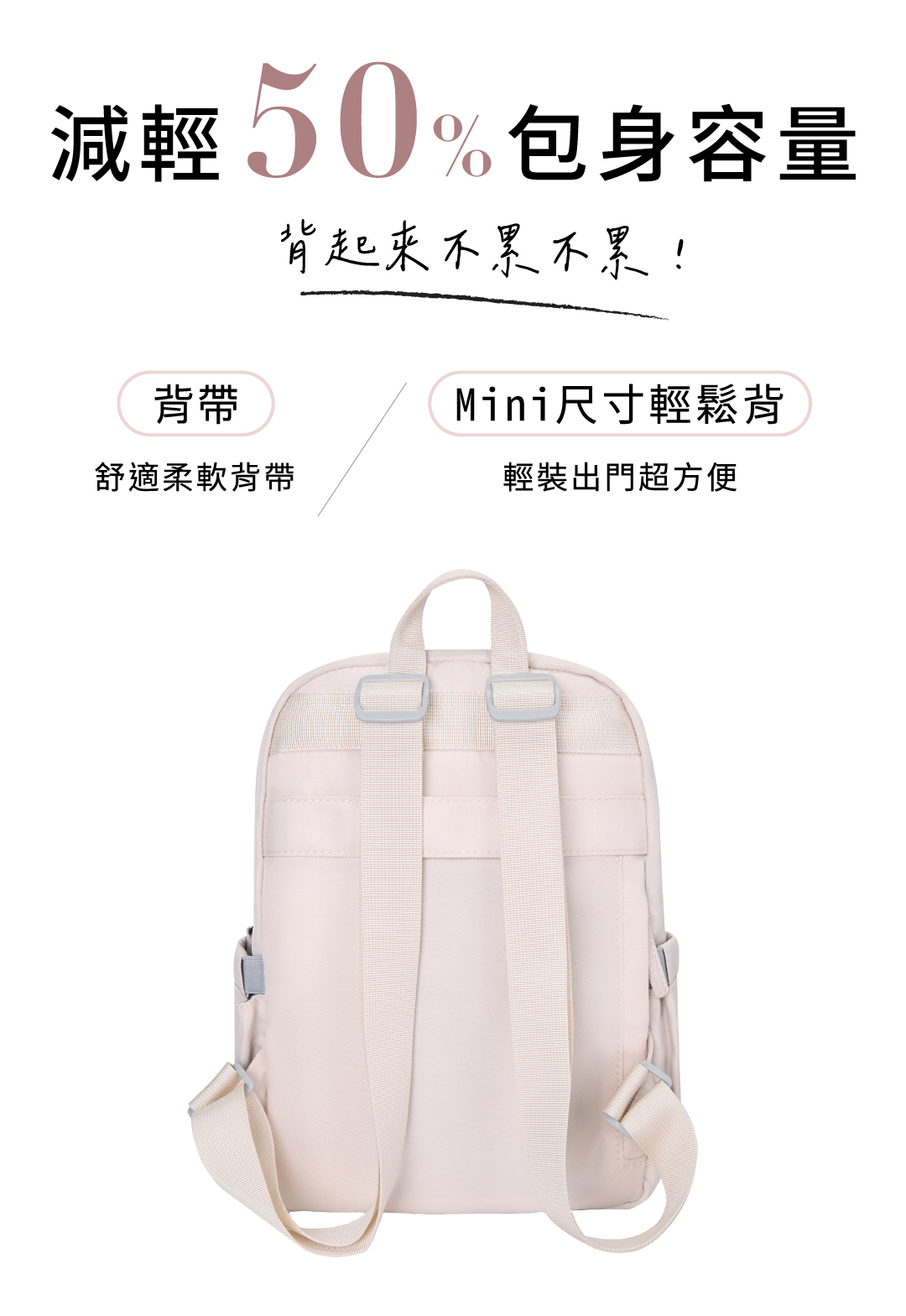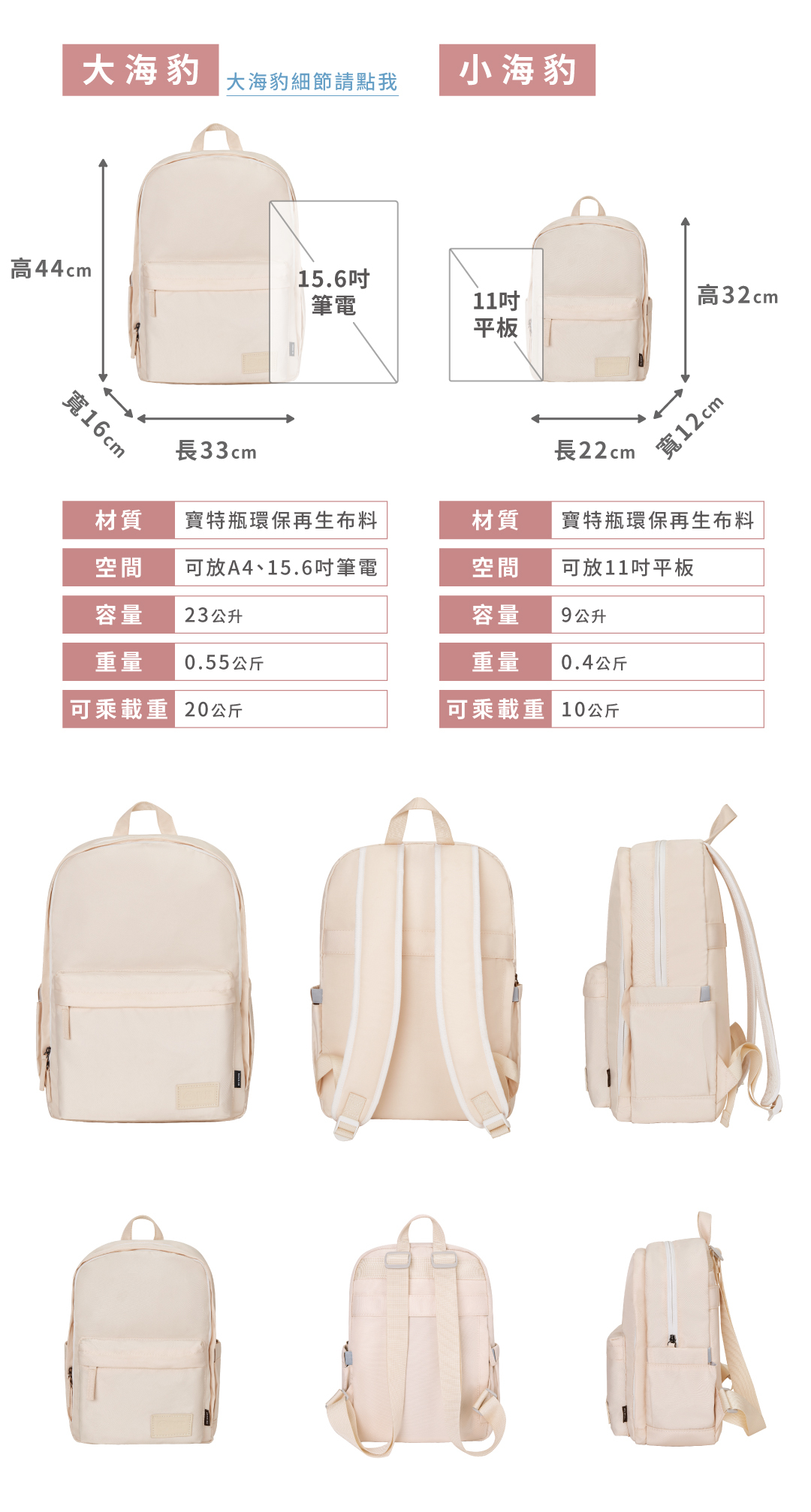 小款為大款的縮小版,無筆電隔層及減壓背帶,其餘隔層皆與大款相同