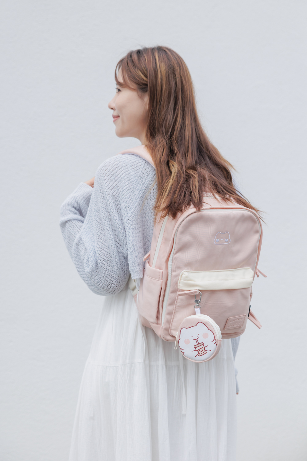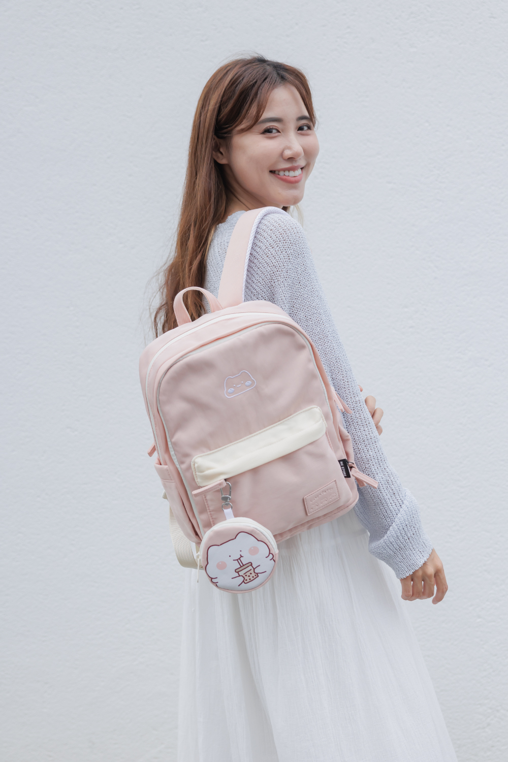【福利品】【中款】胖才可愛雙主袋後背包-粉色款