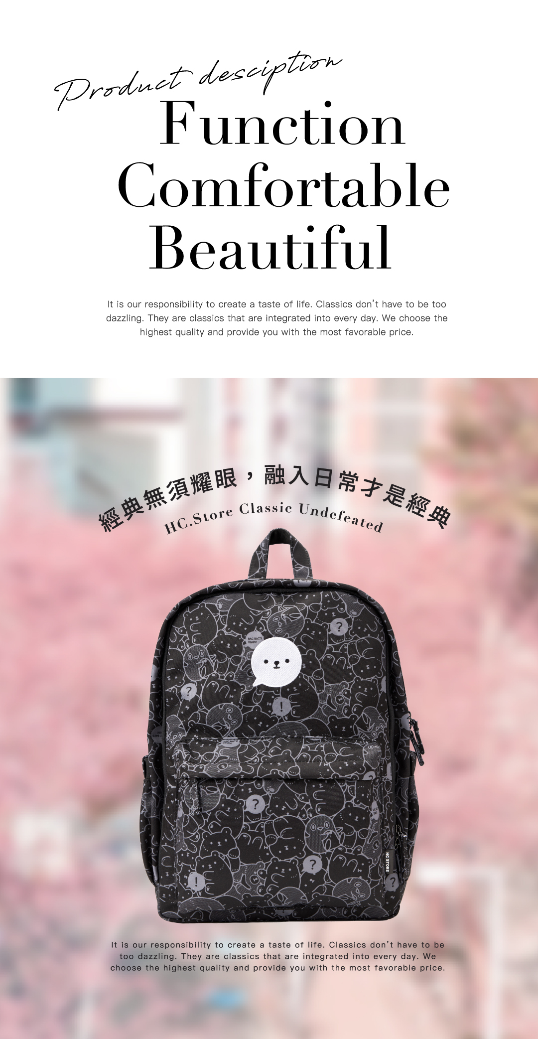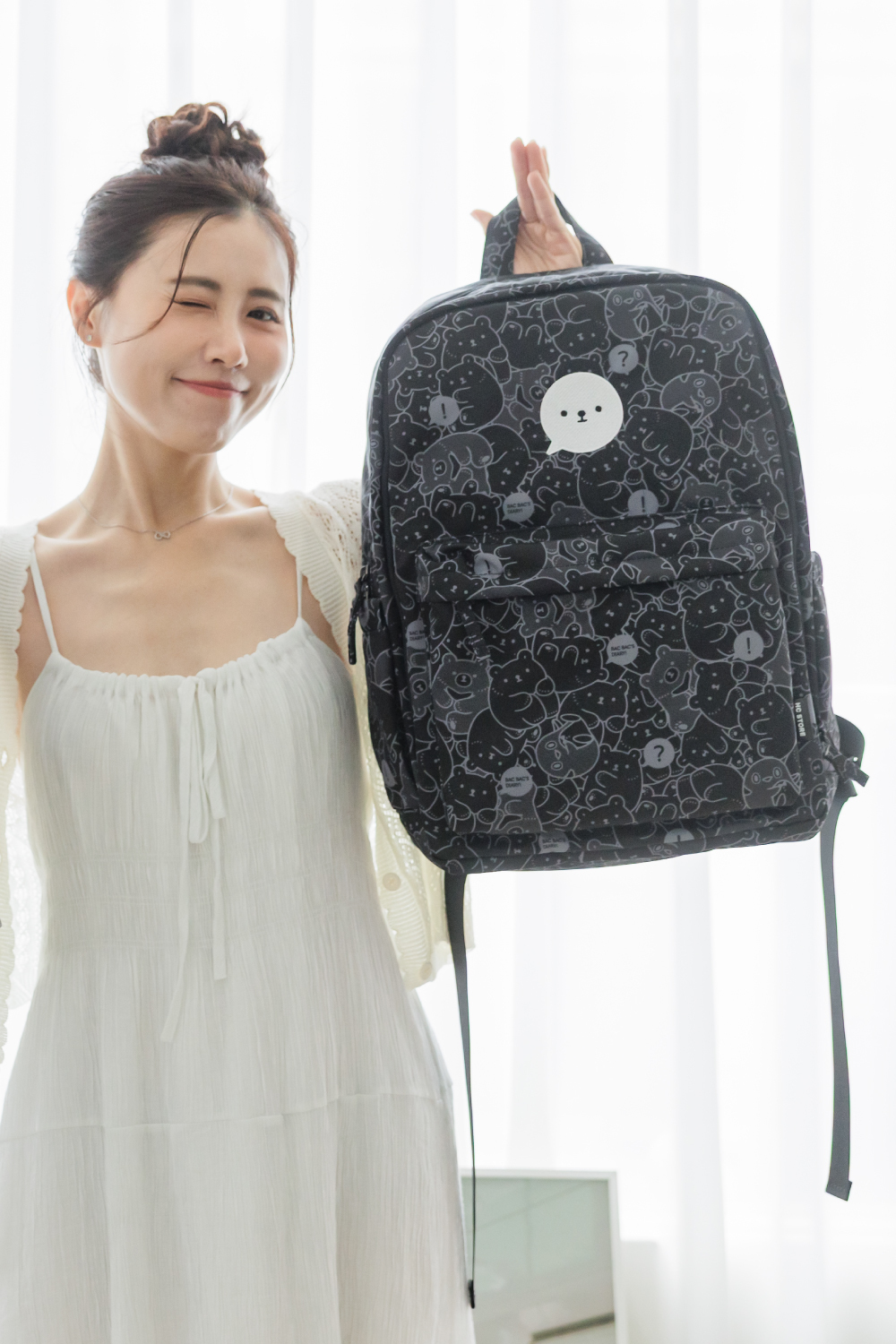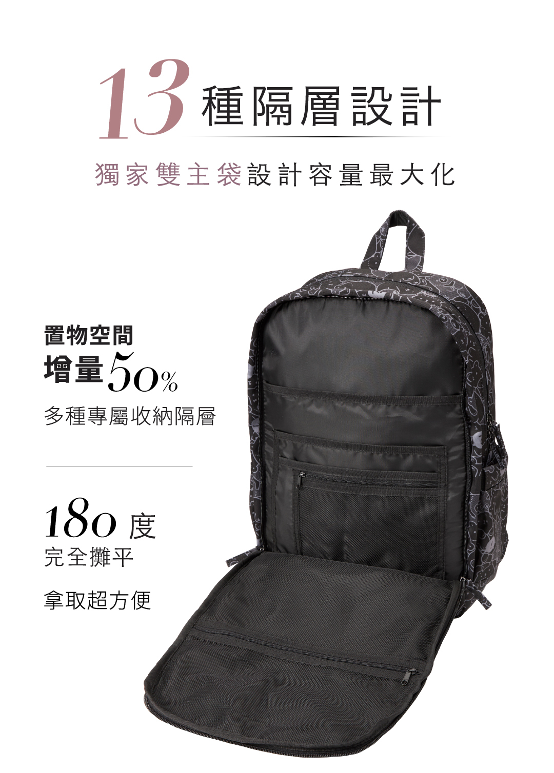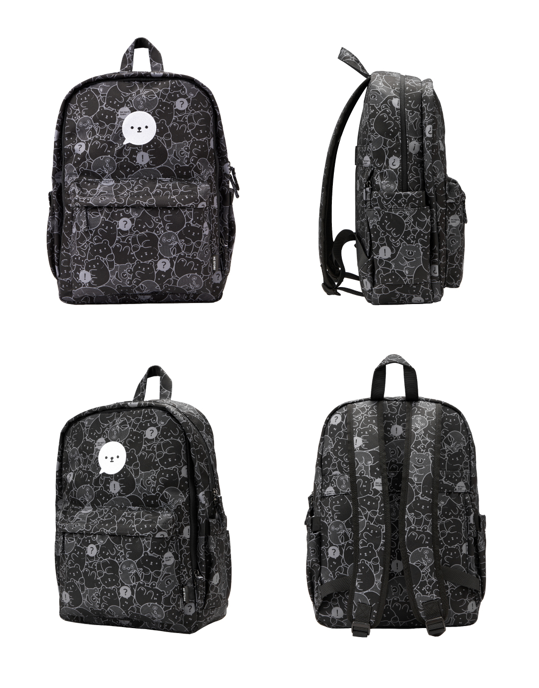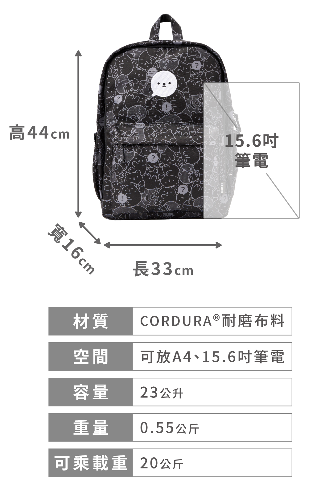 【白白日記聯名款】【大款】雙主袋後背包-滿版白白黑色款