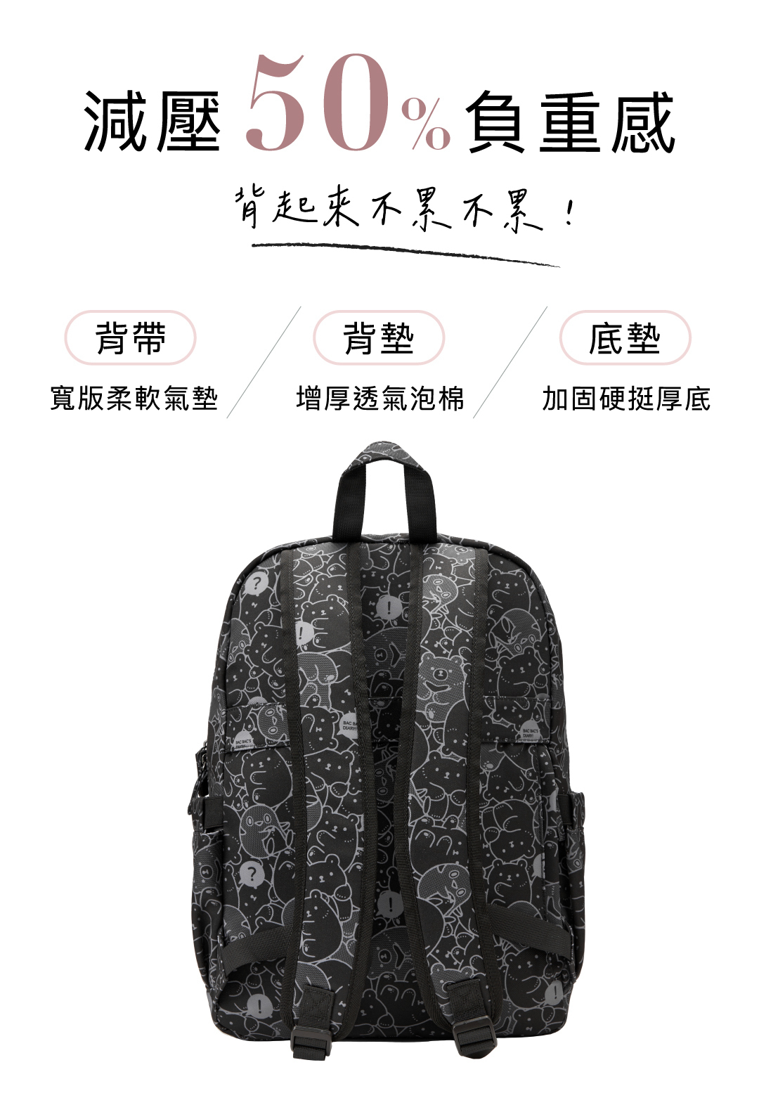 厚實軟墊製成的減壓背帶,減輕肩膀負擔